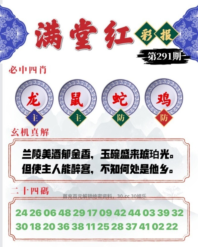 291期满堂红彩报:兰陵美酒郁金香,玉碗盛来琥珀光。但使主人能醉客,不知何处是他乡。 六肖:虎狗鸡猴牛羊 三肖:虎狗鸡 |